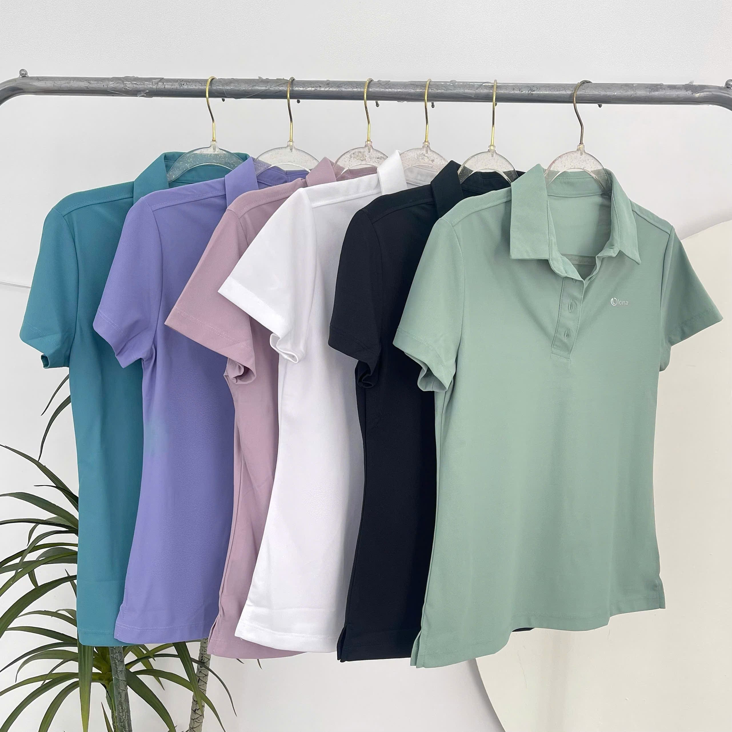 - Màu sắc đa dạng, trẻ trung: Xanh ngọc, tím pastel, trắng, đen, xanh navy – dễ phối cùng chân váy hoặc quần short thể thao.